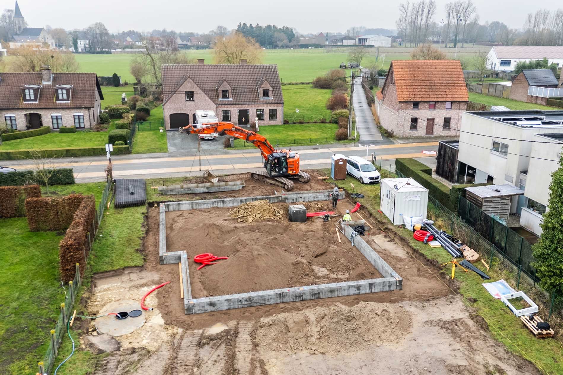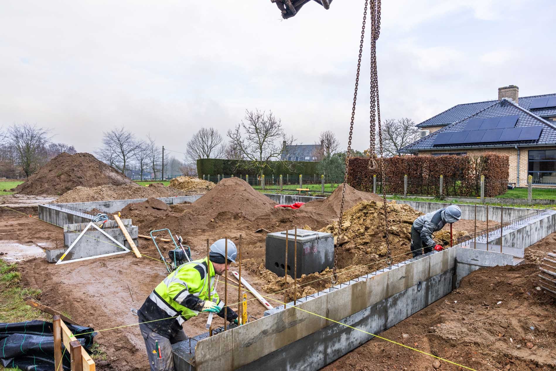 Prefab funderingen en prefab betonwanden voor de terrasmuren en carport zorgen voor een sterke en duurzame basis.